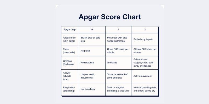 The highest score is 10 and the lowest is 0. The higher the number, the more stable the infant seems at that time. A lower number means that extra help or attention may be needed. The test is quick and well-organized, so it only takes a few seconds to complete. This efficiency enables medical workers to identify areas that require immediate attention. The scoring system helps keep everything organized during a baby's first checkup.